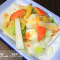 韩式泡菜 原料: 白菜一棵 梨2颗 蒜3粒 姜一小块 盐 白糖 鱼露 干辣椒粉 韩式辣酱 做法: 1、大白菜切成四瓣 用洗米水洗净 2、晾在筲箕里稍微沥干水分 3、在每一层叶片间撒盐 放保鲜盒里密封五小时以上至出水 4、梨 大蒜 姜剁成茸 和干辣椒粉一起...
