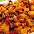 拌匀。将酱油,白糖,醋,味精,清汤,水豆粉调成芡汁。干红辣椒切成2厘米长的节。花生米用油炸脆,将干红辣椒,花椒炸至棕红色,将鸡丁炒散,放入姜葱蒜炒匀,烹入芡汁,加花生米翻两下装盘即可。 制作过程: 1.买鸡腿,切肉成丁。 2.切完将肉洗一洗,放一点点盐、胡椒粉、黄酒...