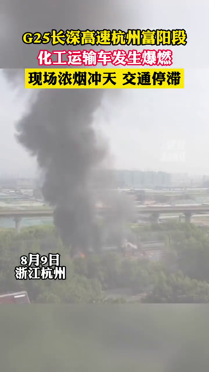 长深高速(富阳互通附近)货车起火!现场黑烟冲天