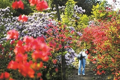 新登镇湘河村有一处寓意美好、和爱情息息相关的美景——塘峰尖“绣球花”山顶。人间四月,芳菲正艳,从百米高空俯视,塘峰尖姹紫嫣红的杜鹃花开得正闹,红一簇、紫一团,宛如一个彩色的大绣球,吸引无数游客,特别是情侣,前来赏花打卡。 塘峰尖位于新登镇湘河村,有花海100多亩,每年4月初到5月初是赏花好时节。开车从山脚沿着之字形道路盘旋爬升,绕过几个大弯道后,便能到达停车场——塘边坪。如今已是4月下旬,塘边坪海