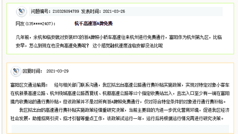 杭千高速浙A牌免费?回复来了