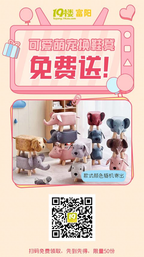 之前大家收到的午睡毯都还好用吗?你们的小编今天又来发放7月份的专属福利啦~高颜值萌宠换鞋凳免费免费免费送!【萌宠换鞋凳】 呆萌时尚的动物造型任你选高回弹海绵,柔软舒服久坐不易变形加厚实木凳腿,稳固支撑底部还带有毛毡脚垫实力加分,静音防滑欧~【参与方式】进入富阳19楼微信公众号(或直接扫描上方二维码)——击菜单栏里面的“换鞋凳”即可参与活动!【查看进度】:回复“海报进度”即可查看邀请结果!【活动须知
