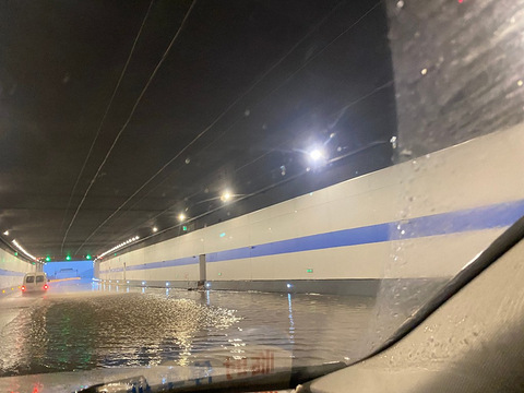 网友爆料彩虹快速路隧道路面积水,双向封道