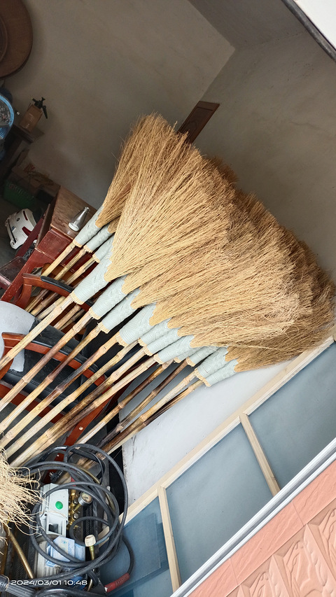 新桐有大量草丝扫把出售,老人的传统手艺,捆扎牢固不散把,且耐用,适合大面积厂房、场地及庭院清扫,有需要的联系:13989883368王。量大可送货上门,也可上门自提(有优惠)