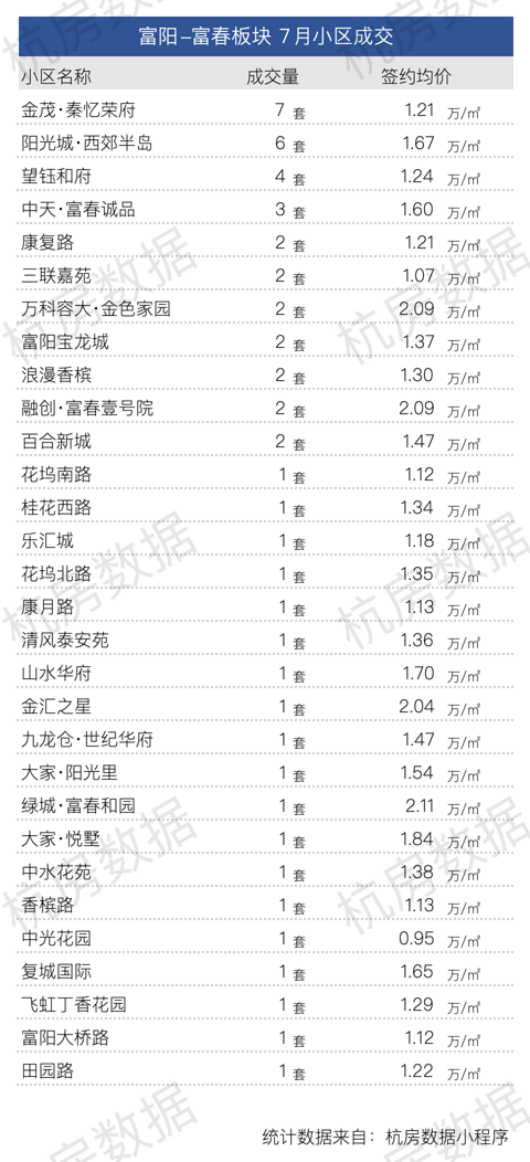 7月富阳二手房数据