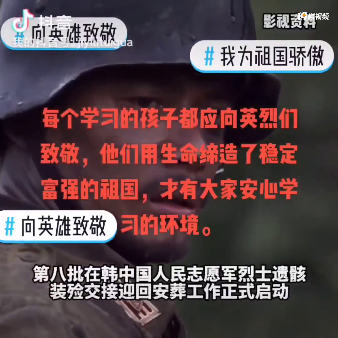 志愿军英雄回家!每个学习的孩子都应向英烈致敬,他们用生命缔造了稳定富强的祖国,给了大家安心学习的环境!