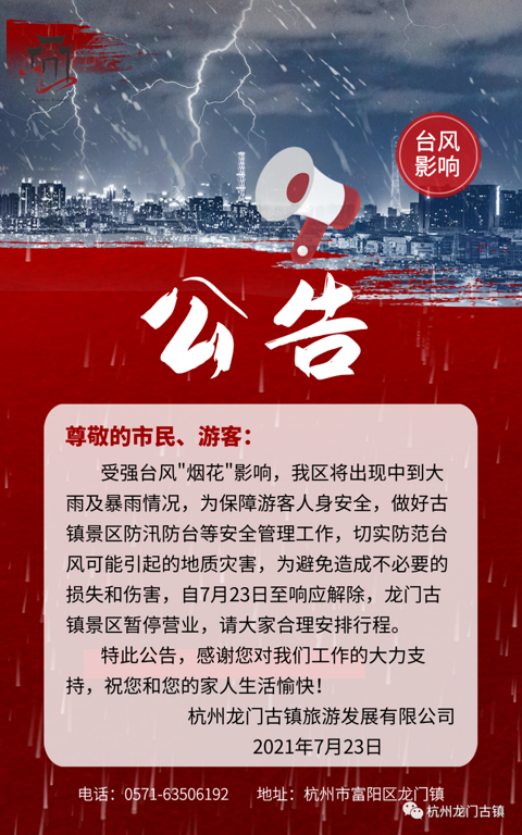 关于龙门古镇景区暂停营业的公告
