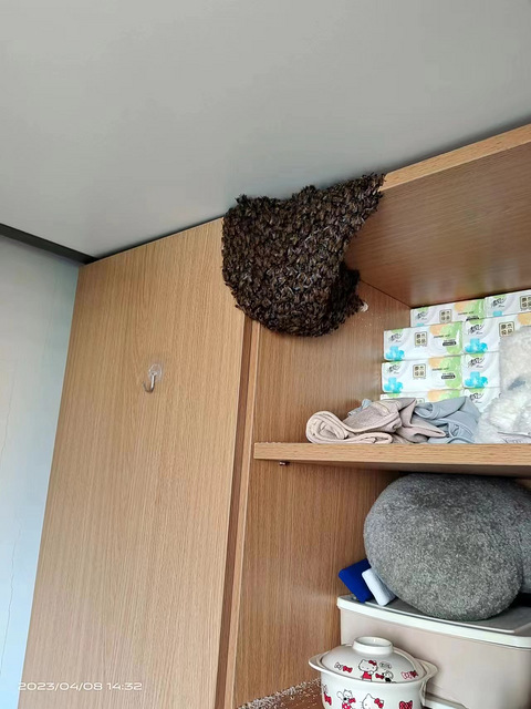 狼群救援队及时清除 2023年4月8日,杭州红十字狼群应急救援队接到消防的电话,位于富春街道的浙江中医药大学富春校区有一个蜜蜂窝需要帮忙清楚,否则的话危及学生的安全。 哪里需要,哪里就有狼群。接到电话后,狼群救援队派出了向义军、陈文杰2名队友前往清除。奇怪的是这个蜜蜂窝是长在女生宿舍储存的柜子里,比较隐蔽。春天到了,蜜蜂也忙于安营扎寨,嗡嗡的飞进飞出,严重影响了学生的生活和休息,