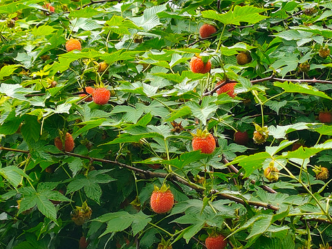 浪漫五月有诗意,没有阳光,学会享受风雨的清凉。没有鲜花,学会感受泥土的芬芳。去山野走走吧,你会被这个绚丽多彩的季节迷住。来到这里,光阴不扰,山水静候,不仅可以吸氧寻梦,还可以采摘掌叶覆盆子!瞧!这位可爱的美女,看到这红红的树莓,兴奋得竟然大声尖叫:“爱死你啦,覆盆子!”这就是现实中的诗与远方吧!