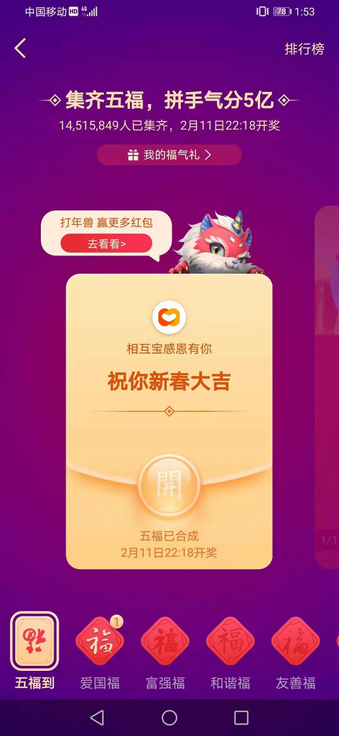 只花10分钟就集齐了五福!今年你们五福齐了吗?
