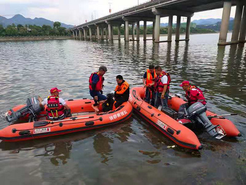 2021年6月9日下午。 杭州市红十字狼群应急救援队接到桐庐分水消防中队求助电话,分水江有人溺水,经打捞无果,求助狼群。 警情就是命令!在接警群看到通知后,队员们一边相互联系,一边来到队部紧急集合。很快组建第一梯队,带上2艘冲锋舟、声呐等水上搜救准备立即出发。 溺水现场位于白沙大桥附近。狼群队员们立即将2艘冲锋舟下水,开始在水面上进行搜寻。据现场搜救队员介绍,水