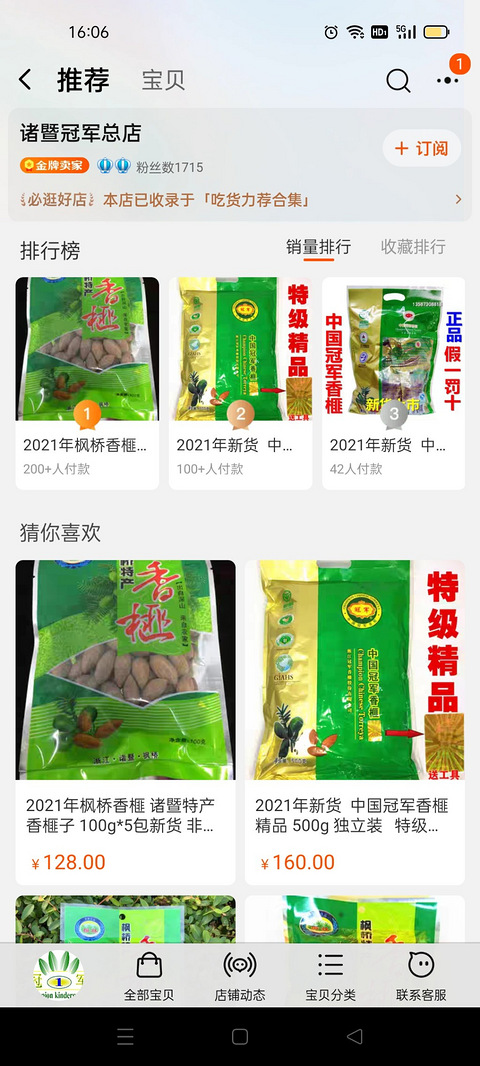 几年前在这家店买了一斤香榧,吃的时候发觉不太好 于是后来给了差评,没想到的是接下来商家的一系列电话轰炸,先是用好多手机号给我电话短信让我改好评,后来打给我家人,也不知道从哪来的号码,可能是因为之前有次聊天说认识我当时上班公司的老板,是她亲戚所以才有我家人,我老公家人的号码,然后就是对他们骚扰,当时不知道淘宝另外可以投诉,又怕投诉了还是要骚扰我们,于是只能没办法改好评了,真的是恐怖