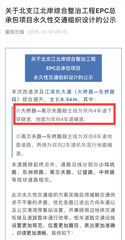 江滨东大道大桥路口至高尔夫路段要挖双向四车道隧道了,各位看官怎么看?