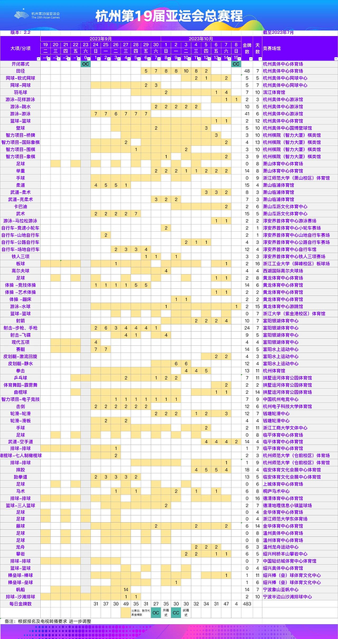 @所有人,赶紧收藏!杭州亚运会总赛程2.2版发布