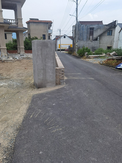 新桐乡某村道路,围墙建在柏油路上,如图中位置,户主说是村里同意的,老百姓想不通,前后贯通的柏油路,是路错了,还是人错了。