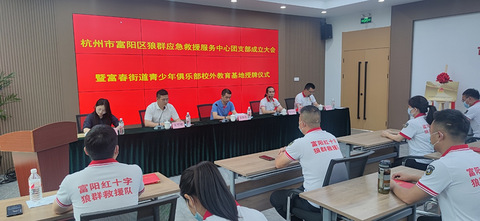 2022年5月30日,富阳区狼群应急救援服务中心团支部成立大会暨富春街道青少年校外教育实践基地授牌仪式在区红十字文化中心成立。 共青团区委副书记朱哲敏、富春街道党工委副书记袁佩翔、富春街道团工委书记杨海艳、杭州市富阳区狼群应急救援服务中心党支部书记陈剑明等领导以及狼群大队部成员、团支部筹备组、部分狼群青年代表等出席仪式。 活动仪式由狼群应急救援服务中心教导员谢益飞主持。首先杨海艳宣读《关于