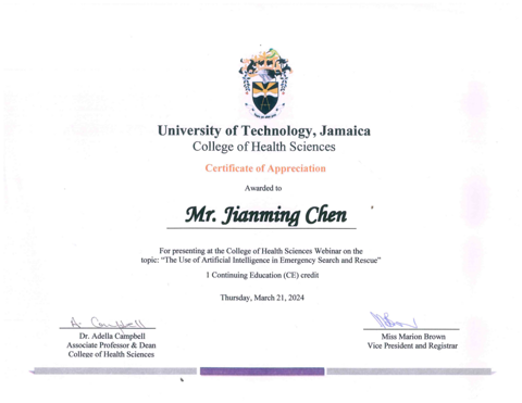 日前,杭州红十字狼群应急救援队大队长收到了一封牙买加理工大学健康科学学院的感谢证书。这漂洋过海的感谢证书从何说起? 原来,2023年6月14日至15日,发展中国家紧急搜救研修班来自尼泊尔、牙买加等8个国家的29名外宾学员,在浙江省红会、杭州市红会、富阳区红会的领导带队下,来到杭州市富阳区红十字文化中心开展紧急搜救研修班活动,聆听救援理论讲座,学习地震救援、 绳索救援技能、地震救援的