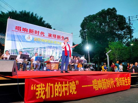 2024年6月7日晚上,富阳区大源镇骆村村文化广场歌声悠扬、灯光闪耀,一场“我们的村晚——唱响新时代 演绎新生活”的文艺晚会在此举行,特邀富阳美新民乐团演出。 晚上6:30,在观众的翘首以待中,乐器合奏《社会主义好》拉开帷幕。紧接着演员们轮番上阵,演唱了一支支歌曲,既有经典的红歌,又有现代歌曲,表演形式多样。有双人舞《永远的赞歌》;笛子独奏《扬鞭催马运粮忙》