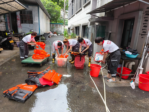 “兵马未动,粮草先行”,后勤是胜利的保证。 连日来,狼群的队员抗洪救灾,他们转移岛上的群众、守护新沙岛和五丰岛,来回搬运物资,在“前线”连续作战,十分辛苦。可是狼群的幕后英雄——后勤组也是忙的不可开交,把后勤工作做得相当出色。 后勤组组长华小蓉更是骨头铮紧,从6月25日开始,她带领后勤队员,每天准备好大伙的伙食,还要烧好、备好姜茶,他们回来随时可以吃。由于天气原因,队员们