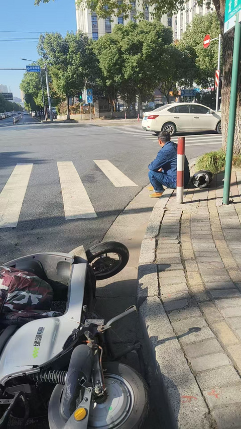 2025年11月29日上午,杭州红十字狼群应急救援队队员魏金磊在出差途经杭州临平兴国路十字路口时,目睹一起交通事故:一辆白色轿车因闯红灯,将一辆电动车撞飞。电动车驾驶人瞬间连人带车重重摔倒在地,现场一片狼藉。 幸运的是,电动车驾驶员正确佩戴了头盔,头部未受伤,但因摔倒后身体多处疼痛,一时无法起身。魏金磊见状,立即将车辆安全靠边停稳,上前查看伤者情况,并小心将其扶起。 经初步