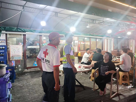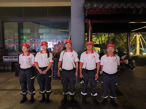 从9月2日开始,每天晚上,红十字狼群救援队场口中队派出一至二名队友,参与场口镇的夏季巡防工作。 每天参与巡防的队员,6点4 5分到场囗派出所集合,一直到晩上9点才结束。狼群队友与派出民警、网格员一起,重点排查场口镇上的出租房、饭店、夜宵摊、KTV等这些场所,查看消防安全设施,消除安全隐患,维护路面的治安,预防和减少各类案件的发生,为守望一方安宁,不辞辛苦,为场口人民的平安幸福保驾护
