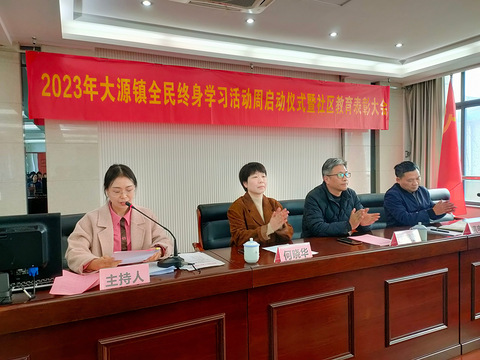 ——大源镇举行2023年全民终身学习活动周启动仪式暨表彰大会 为助力建设终身教育体系,推进处处有学习场所、时时有学习机会、人人有学习愿望的学习型城市建设,2023年11月30日,富阳区大源镇全民终身学习活动周启动仪式暨表彰大会在大源成校举行。大源镇相关领导以及各村文化员、示范性学习共同体负责人、优秀社区教育工作者、老年长学时班负责人、老年长学时班(太极班、曲艺班等)全体学员等出席启动仪式。