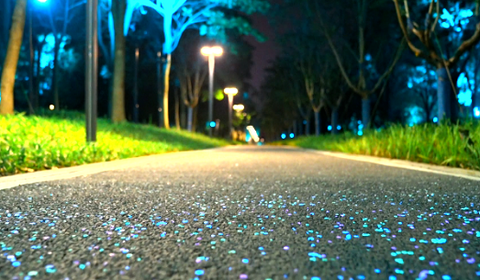 8月初。杭州市富阳区北支江两岸灯光亮起,在北岸的北支江公园,荧光跑道格外吸引人,跑道泛着点点绿光,呈现出星星点点闪耀星空的景观效果,跑道两侧则是荧光绿带。该条荧光跑道有环保、科技、节能的效果,长1500米,首次尝试加入荧光设计,通过在3米宽的路面上填充荧光颗粒和自发光石,让其白天在阳光照射下吸收“能量”,晚上则自己发光。想象下未来的每一年,在4月份的夜晚打卡公园,慢跑散步,伴随着4月樱花的飘落,和