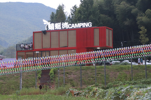 自古深山无六月,此话一点不假。立秋后的天气还是高温连连,热浪翻滚,但走进大源史家村的蜻蜓湾却是凉风阵阵,非常惬意。 2022年8月20日晚上的蜻蜓湾更是另外一番热闹的情景,灯光闪烁,红歌嘹亮,一场“喜迎20大,蜻蜓湾露营基地红歌音乐会”在此上演,参加演出的是“富阳美新民乐队”。 晚上6点30分,演出在乐器合奏中《八月桂花遍地开》、《采茶舞曲》中拉开帷幕。演出前夕,大源镇副镇长作了热