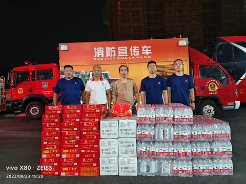 消防送清凉 慰问救援队 2022年8月23日,富阳消防大队富春站清凉送到狼群救援队。他们送来了一大笔矿泉水和饮料。队员们兴奋地说,这正是一场及时雨,无异于雪中送炭。