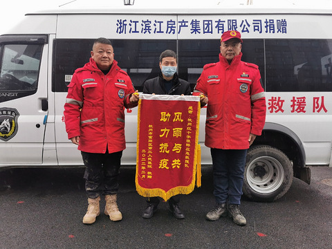 2022年2月18日,杭州市富阳区第三人民医院将一面写有“风雨与共 助力抗疫”的锦旗送到红十字狼群应急救援队,表示由衷的感谢! 在今年的抗疫战斗中,富阳三院的全体医务人员与其他医生一样,也是十分辛苦,不分昼夜奋战在抗疫第一线。狼群救援队及时将一批批抗疫物资(行军床、行军棉被)及时送到三院,还向医院赠送了一批口罩,解决了物资困难的局面。 锦旗上的“风雨与共,助