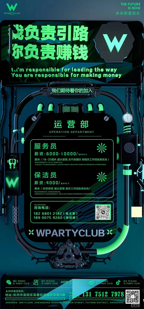 杰达新岗位:西湖区餐饮操作员1.工资4000+住补500+提成+奖金,综合月工资1万+,每天提供一餐。2.工资结算形式:前3天试工,按150元/天结算,转正后,按正常工资结算,正常结算是7天后,每天日结。3.上班时间: 刚开始早上10点-晚上10点, 进场稳定后,上班时间会调整,下午1点左右-晚上10点, 如有加班按30元/小时结算。4.要求:20-35岁,3男5女,身体健康,手脚麻利,能吃苦的。