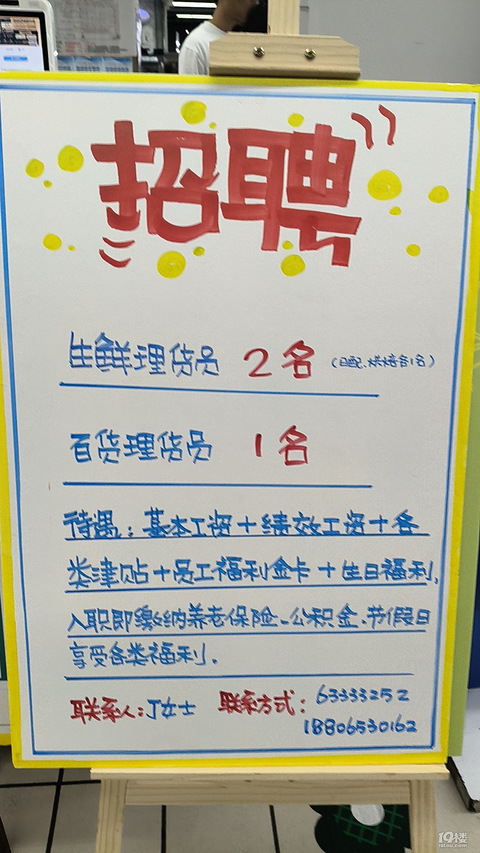 联华超市富阳新世纪店招聘理货员缴养老金