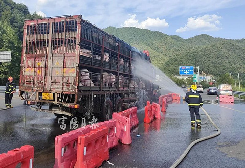 货车上“二师兄”集体中暑,富阳消防员出水相助