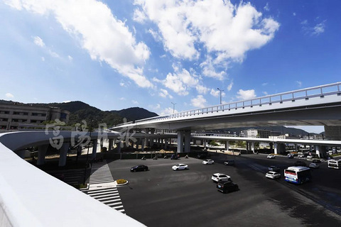 富阳城西,西环北路上方,富阳首座高架线穿越大盘山通向富阳大桥,将原本因一山一江相隔的富阳城西和城南紧密相连。最近,横凉亭路主线正式开通,前往新登方向的司机惊喜地发现,头顶这座市民们翘首以盼的高架线底部刷着白漆,气派十足。 富阳320国道至富阳大桥连接线鹿山(大盘山)隧道工程(以下简称大盘山隧道工程)项目主体工程趋近完成。截至目前,桥梁工程总计完成99.8%,隧道工程总计完成99.6%,道路工程总计