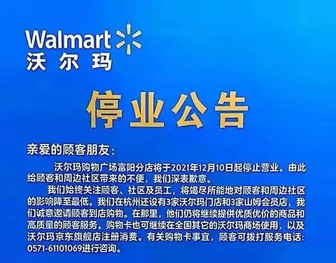 今天是最后一天了。 明天起,富阳沃尔玛就正式停业了。 12月3日,东方茂官方微信发布沃尔玛停业公告,宣布其将于2021年12月10日起停止营业。 许多人都在留言区表达了不舍和遗憾。毕竟,它陪伴了大家七年多的时间,而且在服务、品控方面也做得很不错。 不舍归不舍,离别时还是要好聚好散。 发布公告后,大家该捡漏的去捡漏,该退卡的去退卡。涌动的人潮,排起的长队,有那么一瞬间,像极了它刚开业时的盛况。 当人