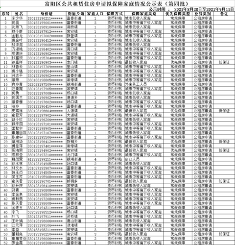富阳2021年公共租赁住房申请拟保障家庭公示(第四批)