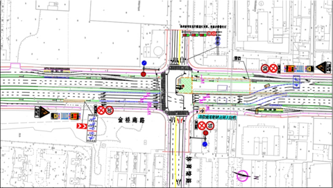 因桂花西路站-秦望广场站连接通道预埋工程施工,富阳区金桥南路体育馆路路口将调整交通组织措施,共分为四个阶段: 第一阶段:封闭金桥南路上南北向的西侧半幅行车道路面(占用路口)。 施工时间:5月4日——5月15日。 第二阶段:同时封闭体育馆路西向东直行机动车道,过往车辆需提前绕行。 施工时间:5月4日——5月15日。 第二阶段绕行路线:体育馆路西向东直行机动车辆请在体育馆路劳动路路口右转提前绕行西环路