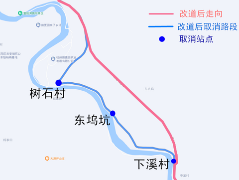 通 告 因环金线路段占道施工,我公司于3月6日起对2301路、2301B路、2301C路、2301D路、2301E路、富阳西站至窈口专线进行临时改道运营,具体情况如下: 2301路,由场口公交站始发,经东坞坑隧道后循原线至窈口(2)站。由窈口(2)站始发,经东坞坑隧道后循原线至场口公交站。撤销站点:树石村、东坞坑、下溪村3对站点。 2301B路,由场口公交站始发,经东坞坑隧道后循原线至李家站