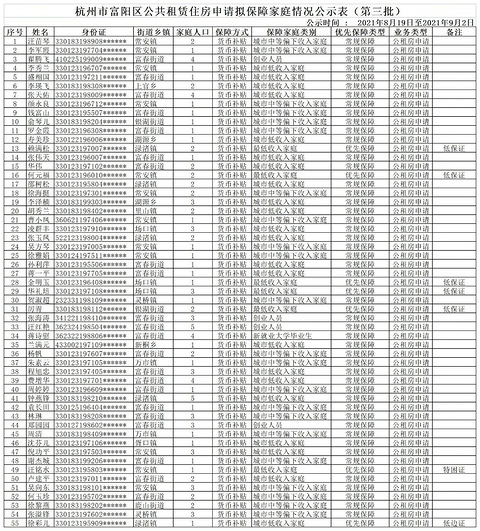 富阳2021年公共租赁住房申请拟保障家庭公示(第三批)