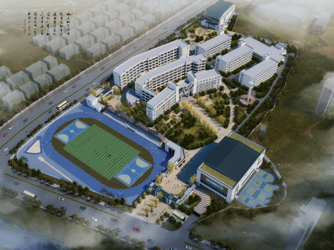郁达夫中学新建体艺楼、学术楼及操场改造工程项目公示鸟瞰图 项目概况1. 建设地点:项目位于公望街以南,北渠路以东,亚林生物公司以西,亚林嘉苑以北。 2. 项目用地面积:54821㎡(其中现状用地面积51455㎡,北侧新增用地面积3366㎡),总建筑面积:58900㎡(其中地上新建建筑面积为15200㎡,地上现状建筑面积为30700㎡,地下新建建筑面积为13000㎡) 3. 本项目主要由地下室、操