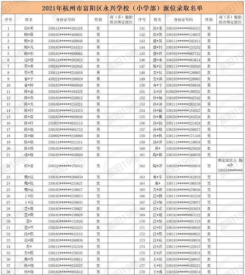 2021年富阳永兴学校小学部、银湖实验学校小学部录取详细名单!