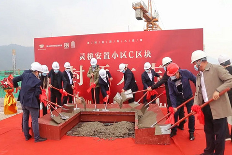 3月28日灵桥安置小区C区块工程主体建筑顺利结顶封顶现场 项目概况 灵桥安置小区C区块项目位于杭州市富阳区灵桥镇胜利路东侧,规划富春湾大道北侧,总用地面积52817平方米,总建筑面积194004.2平方米,总投资6.5亿元。 项目由14幢19F住宅及1~2F配套公建组成。整体下设1F地下室,局部设2F地下室。 目前主体结构阶段全部完成。随着最后一栋楼结顶,代表着灵桥安置小区C区块全面进入砌筑、装饰