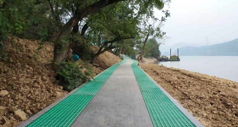 富春江长川绿道工程 该绿道位于鹿山街道和新桐乡境内是现代版富春山居图田园牧歌风光的新桐示范段建设的重要内容 目前富春江长川绿道的滨水栈桥部分正在加紧施工绿道全线拉通的最后一环即将打通 在富春江长川绿道建设施工现场,可以看到整个工程的施工都是由人工完成,这是由于施工现场一侧临江,一侧陡峭山崖。这也是绿道修筑工程的最重要一个环节。 由于建设地形复杂,大型的机械设备无法进场施工,整条栈桥段长达600米,