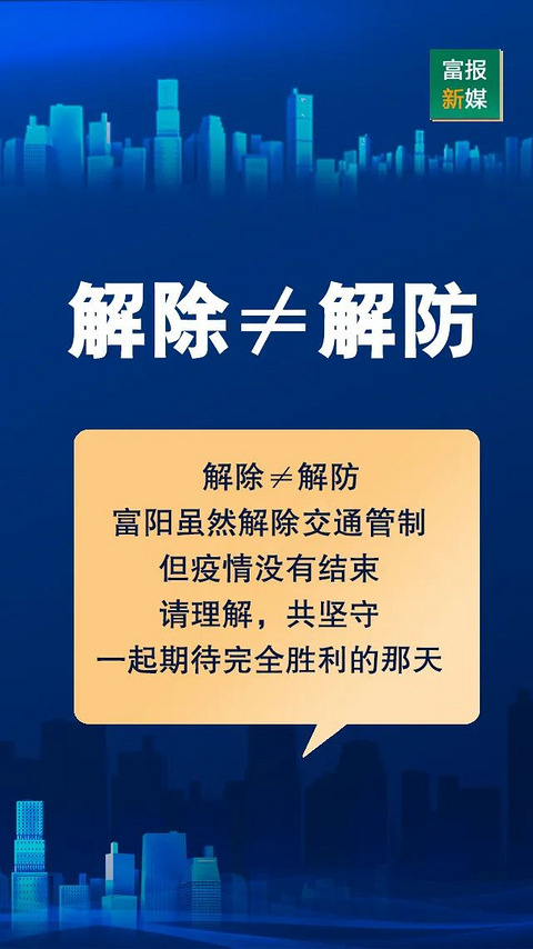 2月6日16时 富阳交通管制解除 但解除≠解防 疫情防控不能松动 请接力倡议